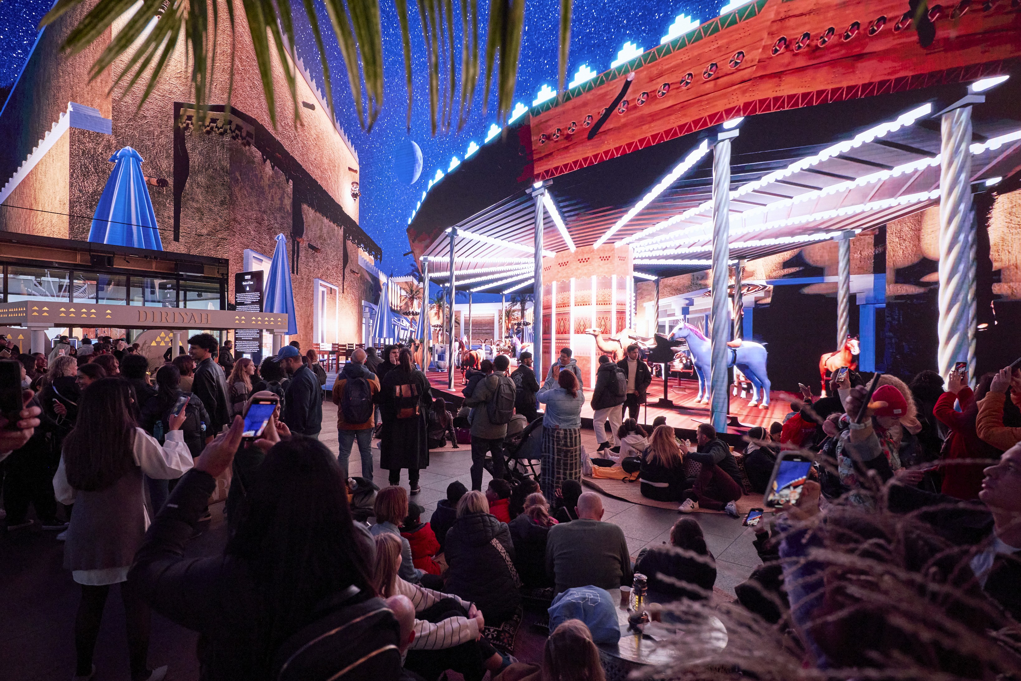 The Now Building: A 360-degree, 16K floor-to-ceiling experience where the scale of At-Turaif was reconstructed to wrap around the audience.