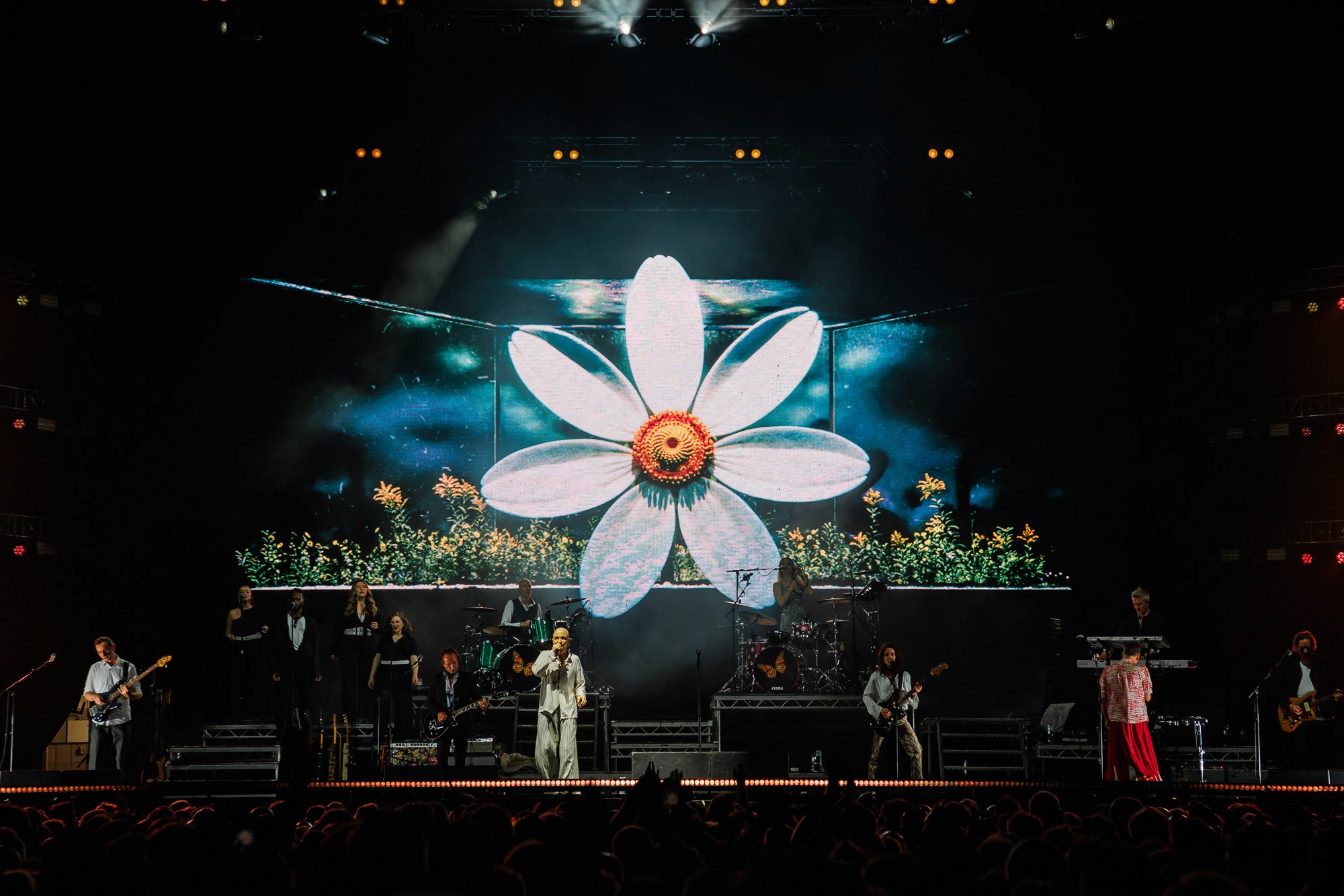 We developed a bespoke visual identity for the tour, producing over 20 unique loops and immersive content pieces. Our team used Unreal Engine and 3D graphics to build detailed models and cinematic sequences. We pioneered a workflow using TouchDesigner and generative AI live feeds to create real-time reactive visuals that adapted to the band's performance. To enhance the physical atmosphere, we integrated real-time ripple shaders synchronised with the lighting beams and moving heads.